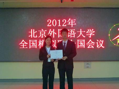 而北京外国语大学模拟联合国大会于12月1至2日在北外举行。各校优秀青年讨论国际大事,交换意见、磋商寻求问题解决。我院孙琳然和公共管理学院朱羽佳两位同学通过出色的表现,获得了“荣誉提名奖”称号。