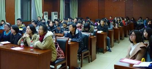 接着,2011级研究生李园园、甄婷婷、余经纬和冯锐分别分享了各自的社会实践经历与收获。2011级保险硕士李园园、甄婷婷均在此次研究生社会实践中获得表彰。李园园结合所在小分队开展的社会调研项目,详细介绍了社会实践项目的申请、调研、成果、答辩等整体流程及内容,并分享了调研经验;她指出,申请项目之前应当读懂通知的规则,调研之前要做好详细的计划,调研成果要注重文章的逻辑结构、格式规范和重复率,答辩环节要做到善始善终;并以“态度和细节很重要”,“世界和我们想象的不一样”的实践体会结束了发言。甄婷婷则通过介绍调研选题到立项申请的注意事项,以及调研中可能遇到的问题两个方面分享了自己的经验与心得。2011级金融硕士余经纬和2011级投资学硕士冯锐均在汉口银行有过实习经历。余经纬从“问问自己是否真的能熟练操作office软件”、“好记性不如烂笔头”、“真诚、用心”和“面广而精,贵在坚持”几句心得体会出发,结合切身实习经历,与在场的研究生进行了交流。冯锐则分享了为什么要去银行实习、实习的基本内容和实习的心得体会等几个方面的内容;他指出,实习可以培养个人独立解决问题的能力,实习中应当学会恰当地与人相处,谨慎细致地对待小事,并介绍了关于简历制作的几个要点。