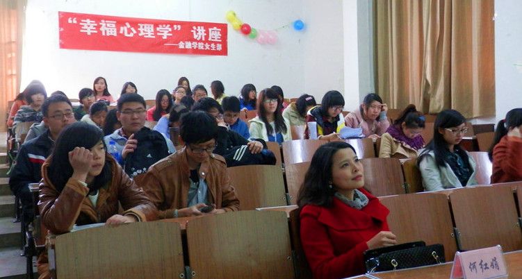 (通讯员 胡阳 学生记者 郝彬凯 何雯怡)“你幸福吗?”“我姓何”,“你满足吗?”“我土家族”……3月14日下午14时,在电教101教室我校心理健康教育咨询中心专职心理咨询师何红娟老师用幽默的开场白为金融学院学生带来了一场传递幸福真谛的心理学讲座。本次讲座作为继“假面舞会”之后女生节系列活动的第二场由金融学院女生部主办。