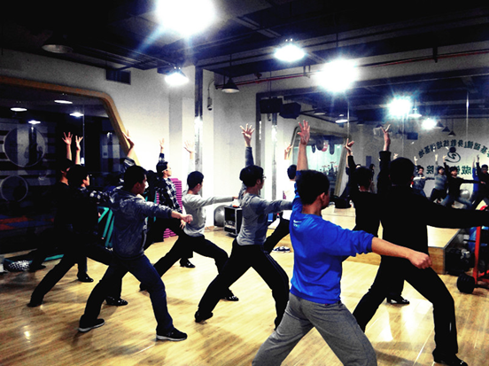 首先,校体育舞蹈队的符豪师兄带领男生们进行跳舞前的热身运动,男生们一个个憋足劲头喊出那响亮的“哈”声令人热血沸腾。同一时刻,女生们在另一边放松身体端坐在地板上,进行多次下腰运动。据悉,他们励志要在比赛里面争夺前三,延续保险班历年来的传统,因此同学们都非常认真,每一个动作都尽力做到最好,遇到不懂的就向他人请教。