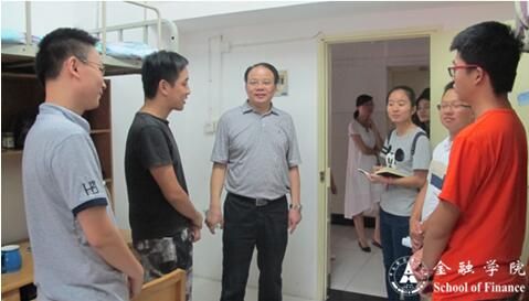 (通讯员屈代洲学生记者邹雨田)8月31日上午10:00,金融学院党委书记江克宁带领研究生辅导员梁艳艳、屈代洲及研究生会主要干部走进学院2016级研究生新生寝室,探望、慰问新同学。