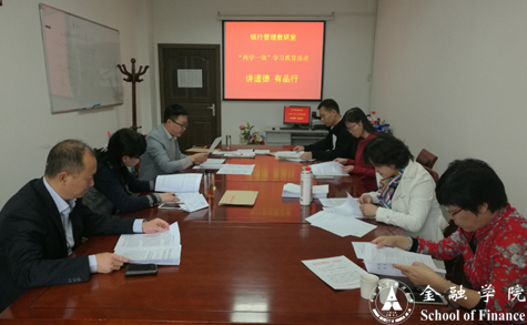 在此次“两学一做”学习教育中,银行管理教研室党支部主要从三个方面开展学习:认真学习换届纪律有关文件规定;集中观看警示教育片《镜鉴》;开展“讲道德、有品行”专题学习。