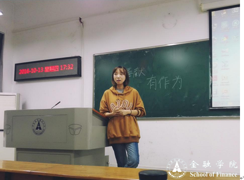 (学生记者 贾圆圆)为积极响应金融学院“两学一做”号召,提高学生党员党性修养,10月13日下午5:30,2015级投资二班党支部在文添楼110教室召开“讲奉献、有作为”专题学习讨论会。党支书杨思源同学主持。
