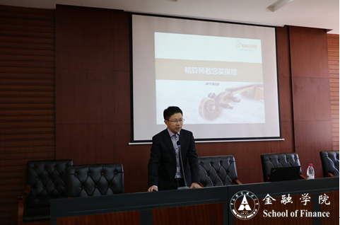 讲座伊始,胡宏兵教授首先代表学院师生对娄道永先生的到来表示热烈欢迎,并向在座师生简要介绍了其在保险行业的卓越成就,娄道永先生作为中国首批精算师,中国精算师协会创始会员,曾担任多家保险行业精算师及产品部总经理,具有丰富的专业经验及独到的行研眼光。随后胡老师向大家介绍了会议议程,会议由两部分构成,议程第一项为副校长姚莉教授向娄道永先生颁发金融学院聘任证书,得到在场师生的热烈鼓掌。议程第二项则拉开了本次讲座的重头戏,娄道永先生用富有激情的宣讲让同学们享受到了一场高水平专业视角的盛宴,内容充实易懂。