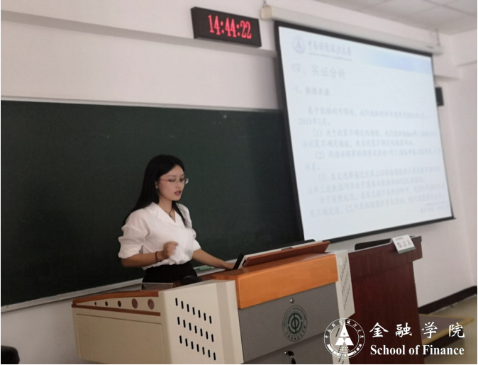 8月24日下午, 分论坛在中国劳动关系学院闻道楼三楼举行,70名学者在分论坛中分组报告,论文主题包含宏观经济、人力资本、劳动关系等多个领域。在第八分论坛中,我院2017级金融学硕士生袁丽琪作了题为《经济政策不确定性和短期国际资本流动对股票收益率的冲击》的论文汇报,并听取了专家评议。