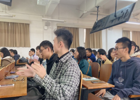 ”,董老师强调,作为大学生最终的理想应该是承担起社会责任,为社会做出应有的贡献。第二,“脚踏实地,刻苦钻研”,保险保精专业学生首先面临的是英国精算师考试,需要付出足够多的时间在学习上,有些专业科目,更加要求脚踏实地上好每一堂课,整理好每一次的笔记,完成每一次的课后作业。第三“文理兼修,锻炼身体”,要成为一名精算师,不仅要有扎实的数学基础,还要利用文科的严密逻辑思维更加准确地理解经济学概念。生活中在严密的逻辑之外也不能够缺少人文情怀,繁重的精算课程需要我们健康的身体做后盾。要加强锻炼,杜绝熬夜,更不能“通宵”,“刷夜”,否则得不偿失。董老师轻松的语言把看似“鸡汤”的话语变为最朴实的建议与期望,同学们都深深记在了心里。