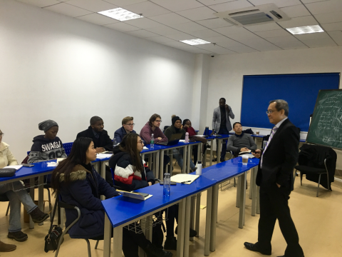 12月23日上午,Michael Cheah教授在文澴楼为金融学院研究生做了题为“Understanding Economic Data for Investment”的学术讲座,讲座伊始,金融学院新进教师袁歌聘老师为同学们介绍了Michael Cheah教授。随后,Michael Cheah教授通过剖析GDP的内涵,为同学们分析为何美国4%的实际GDP增长率是通胀的,而中国同样的4%的实际GDP增长率却是衰退的,并与同学们探讨如何将关键组成部分组合在一起来预测美国GDP增长变化。之后又与同学们讨论如何剖析美国通胀数据,并弄清楚何时价格下跌不是好事。袁歌聘老师全程为同学们进行翻译,课堂气氛活跃。