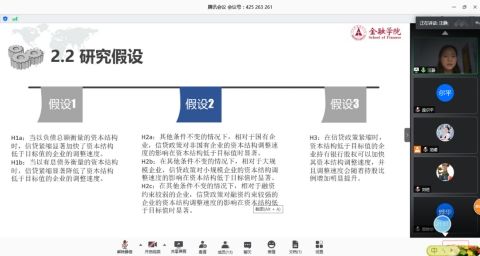 论坛分为两个环节,首先由主讲人汪静就个人研究成果进行汇报。汪静同学根据论文结构从以下几个方面进行讲述。首先提出选题背景、选题的理论及现实意义,并对国内外相关的文献综述以及本文的研究思路和方法做出简洁详细的汇报。接着引出本文的两个研究问题,一是信贷政策是否会明显影响企业的资本结构调整速度?二是在企业的调整速度受信贷政策的影响下,存在银行股权关联是否会明显加快企业的调整速度?研究发现信贷政策会显著影响企业的资本结构调整速度。最后,汪静同学依据研究结论提出了相关的政策建议,并针对本文的不足之处提出研究展望。