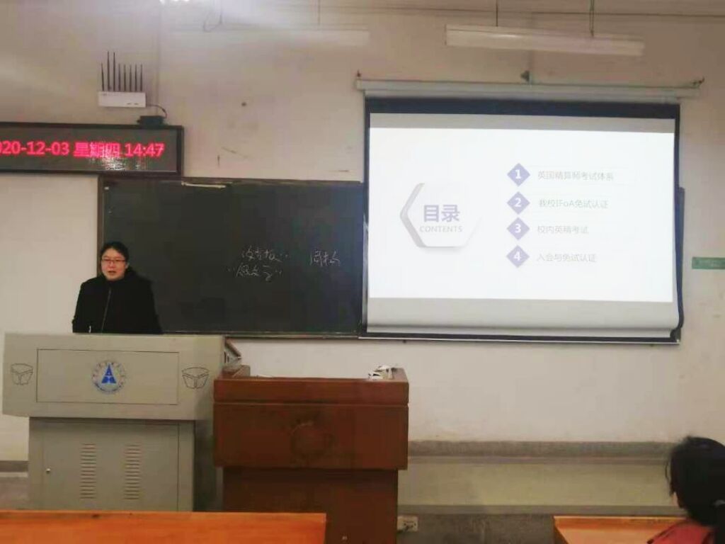 周艳丽老师主要介绍了本校精算师培养体系,分为以下四个部分:(一)对英国精算师协会(IFoA)考试体系,和各阶段的英国精算师考试进行了详细介绍,台下学子积极回应,展现出浓厚兴趣。(二)向同学们介绍了我校IFoA免试认证,本校拥有英国精算师全部基础课程的认证资格,使本系学子在校内就能通过IFoA免试资格,为精算师考试节省更多时间精力金钱。(三)对大学各学期IFoA认证课程进行了介绍,让同学明确自己的方向目标。(四)对IFoA学生入会和资格认证进行详细讲解,让同学们对资格申请流程更加清晰。周艳丽老师的讲解解决了大部分同学内心对英国精算师考试与认证的困惑,帮助同学们明确了自己的定位与目标。