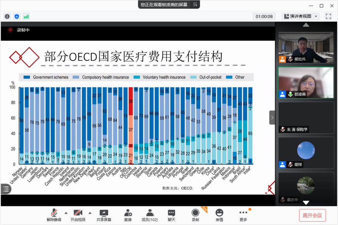 (学生记者 朱涛)2020年12月17日下午3:00,金融学院“文澜金融论坛第210期:健康中国与保险业发展”线上讲座在腾讯会议顺利举行。本次讲座的主讲嘉宾为北京大学经济学院副院长锁凌燕教授,由金融学院副院长胡宏兵教授主持。本次讲座共100余位师生参与。