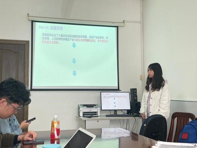 雷丹丹同学介绍该篇论文聚焦人才政策是否能够促进企业的创新,并通过实证检验得出人才政策在促进企业创新方面有区别于其他政策工具的独特优势,但人才政策对企业策略性创新倾向反应影响不显著,并且人才政策对企业创新的促进作用具有小企业对大企业、市场化程度低对程度高、高端教育人才供给低对高的显著性优势。接着,同学们就论文写作中的相关问题展开讨论。