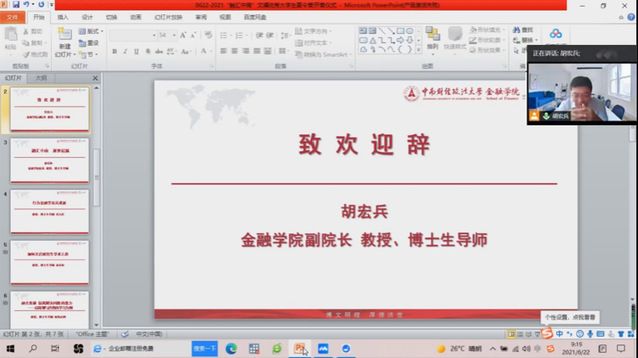 (学生记者张瑞钰崔巍川左梦林张航)6月22日上午9:00,米兰电竞·(中国区)2021年“融汇中南”文澜优秀大学生夏令营在云端开营。本次夏令营有全国众多知名大学650位优秀本科生报名,经遴选共有451名营员在线上相聚。金融学院院长余明桂,党委书记汪平,副院长胡宏兵、李建华、吕勇斌,党委副书记黄小妹,党委副书记兼行政副院长李沛,学院各导师组组长以及全体营员参加了开营仪式,开营仪式由胡宏兵副院长主持。
