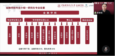 开营仪式上,胡宏兵副院长首先代表学院向参加夏令营的各位优秀学子表示热烈欢迎和衷心祝贺。随后,余明桂院长为夏令营开营致辞,余院长从学院的历史沿革、学科建设、教学名家、优秀校友;以及研究生专业设置、招生就业和未来发展等方面详述了学院的基本情况。余院长的讲解展现了金融学院博学睿思,勤勉致知的学术氛围,提出了“创造金融新知、培养金融精英、引领金融实践、推动国家发展”的金融人使命。