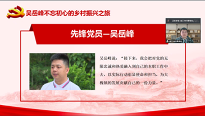 10月22日晚,本科生第四党支部通过线上会议开展红色印象活动,支部同志们分享了90后女书记李欣、先锋党员吴岳峰的乡村振兴之路和先进事迹。支部的陆沁怡同志表示,李欣在白鹤村成长,也将自己的青春奉献给白鹤村。她用实际行动说明了什么是饮水思源,什么是艰苦奋斗。作为一名共产党员,她更是将为人民服务作为自己工作和服务的宗旨。马克思主义认为,历史是由人民群众创造的,而这些不忘初心努力奋斗的优秀共产党人,在扶贫工作、农村地区发展等诸多领域扎根基层,对农村地区发展发挥着重要的推动作用。支部的薛培杰同志同样深有体会,通过学习吴岳峰同志的事迹,他懂得要将自己对党的无限忠诚和热爱融入到自己的本职工作中去,以实际行动彰显使命和担当;在开展日常工作时,遇到困难始终不灰心、不气馁,坚持学习新知识、新技术,坚持把党的路线方针政策与本职工作的实际紧密结合起来,创新工作方法,不断研究新情况,解决新问题,探索新路子,为身边的同学提供更好的服务。