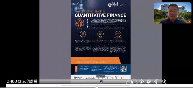 主讲人简介:周超博士毕业于法国著名的巴黎九大和巴黎综合理工大学,现任新加坡国立大学量化金融中心研究员。主要研究领域:金融数学、随机控制。曾在多个国际权威的金融数学杂志上发表文章。如:The Annals of Applied Probability、The Annals of Probability,Mathematical Finance等。