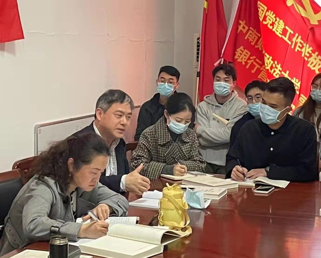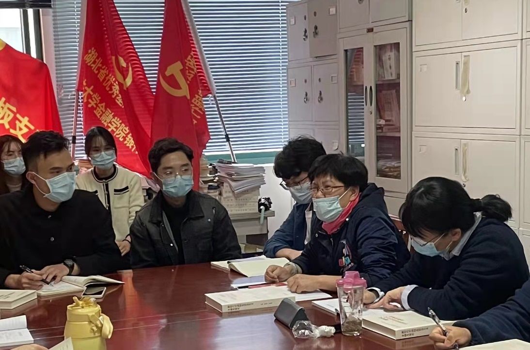 (通讯员 田乾沛)2022年3月17日,金融学院银行管理教研室党支部与研究生2020级金专三班党支部在文泉楼611室举行师生共建主题党日活动。本次活动以“奋进十四五,建功双一流——深入学习贯彻2022年全国两会精神”为主题,师生党员们结合学习思考和工作实际,围绕“两会精神”和“双一流建设”进行了集中学习与心得交流。本次活动由金融学院党委委员、副院长、教师支部书记吕勇斌与学生支部书记李婧菲联合主持,银行管理教研室陈彩虹、宋清华等10名教师党员和汪静、田乾沛等9名学生党员参加,金融学院院党委委员冀志斌副教授、辅导员范媛老师列席。