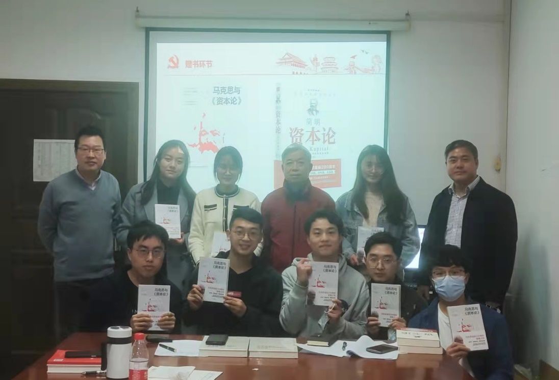 在赠书环节,吕勇斌教授、陈彩虹教授和宋清华教授代表教师党员向9名学生党员赠送书籍《简明资本论》和《马克思与资本论》。这两本书阐述了马克思经典著作的主体和精华内容,以小见大,教师党员们期盼学生党员们能够通过重温经典,牢固树立马克思主义唯物史观和正确党史观,深刻领会马克思主义中国化的理论成果和实践意义,不忘初心、牢记使命,为“奋进十四五”和“建功双一流”积极贡献中南大金融学子的青年力量和担当。