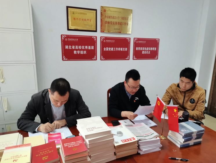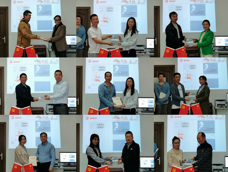 在赠书环节,各位教师党员向9名学生党员赠送书籍《新时代中国特色社会主义金融发展论》和《马克思金融和经济危机理论的启示》。这两本书基于马克思主义经典理论,对经济金融发展规律进行归纳、总结和提升,对中国特色社会主义金融发展具有重要的理论与现实意义。教师党员们期盼学生党员们能够将读书与实践相结合,使马克思主义中国化的理论成果内化于心、外化于行,为“奋进十四五”和“建功双一流”添砖加瓦。