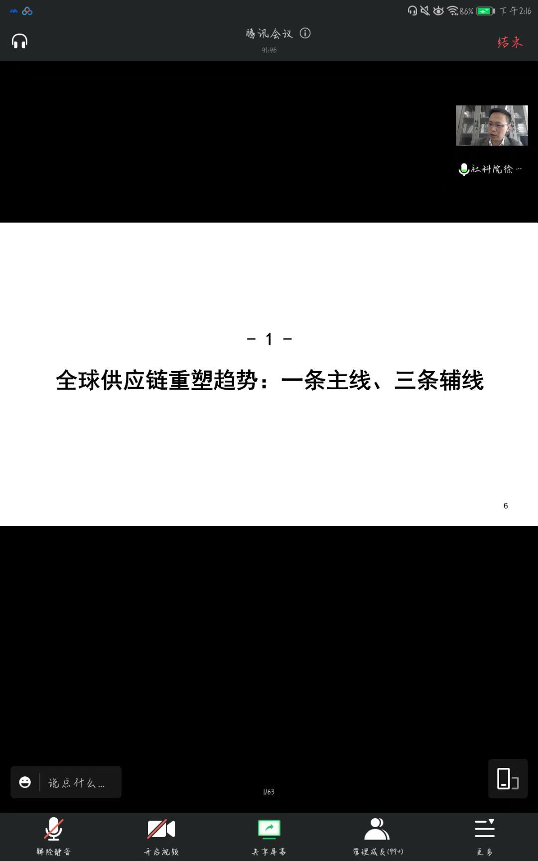 (学生记者 李鑫汝)5月11日下午两点,金融学院第235期文澜金融论坛暨第230期“文澜大讲堂”之名家讲坛在线上顺利举行。本期论坛分享的主题是“全球产业链重塑:中国的选择”,主持人为金融学院陈思翀教授,主讲人为中国社科院世界经济与政治研究所研究员、博士生导师徐奇渊,学院师生200余人参与此次讲座。