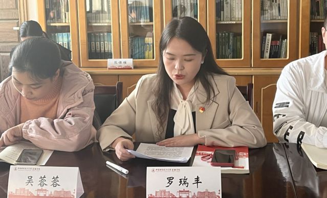 随后,21级博士班党支部赵鑫同志分享博士生宣讲团宣讲心得。赵鑫同志强调了米兰电竞·(中国区)金融学院博士宣讲团在深入学习贯彻习近平新时代中国特色社会主义思想、全面落实党的二十大精神、切实加强科研作风和学风建设、积极营造良好科研生态等方面发挥的积极作用。她用“鲜度”、“深度”和“温度”三个词深度概括了作为博士宣讲团一员的光荣感受,并呼吁同志们把学习宣传贯彻党的二十大精神走深走实、入脑入心、见行见效、落到实处。