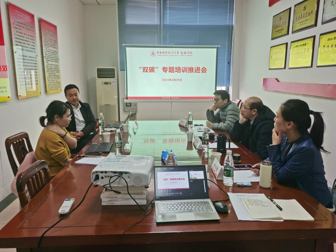 为贯彻《中共中央 国务院关于完整准确全面贯彻新发展理念做好碳达峰碳中和工作的意见》、《国务院关于印发2030年前碳达峰行动方案的通知》(国发〔2021〕23号)和《教育部关于印发加强碳达峰碳中和高等教育人才培养体系建设工作方案的通知》(教高函〔2022〕3号)精神, 助力“双碳”人才培养体系建设,金融学院积极响应国家号召,推进相关工作。2月28日下午,金融学院与中国有色金属学会在文泉南楼310会议室举行“双碳”专题培训推进会。