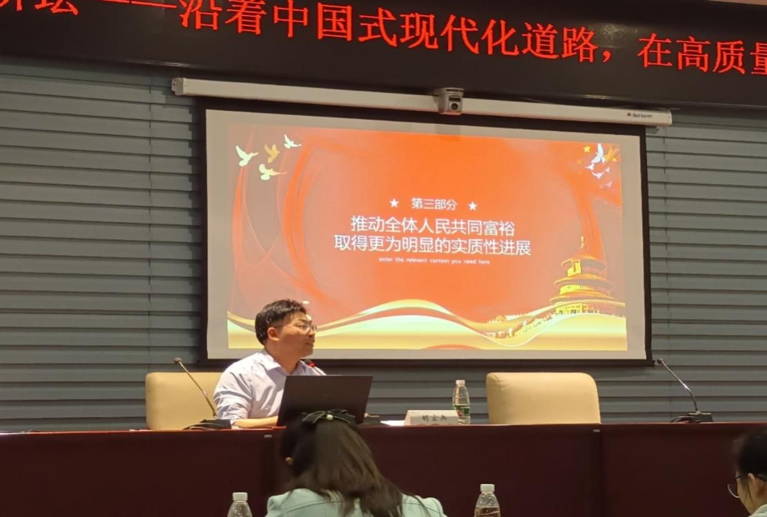 接着,胡宏兵教授围绕“把促进全体人民共同富裕摆在更加重要的位置”、“准确理解和把握促进全体人民共同富裕的内涵”、“推动全体人民共同富裕取得更为明显的实质性进展”三个部分对如何沿着中国式现代化道路在高质量发展中促进共同富裕展开具体讲述。