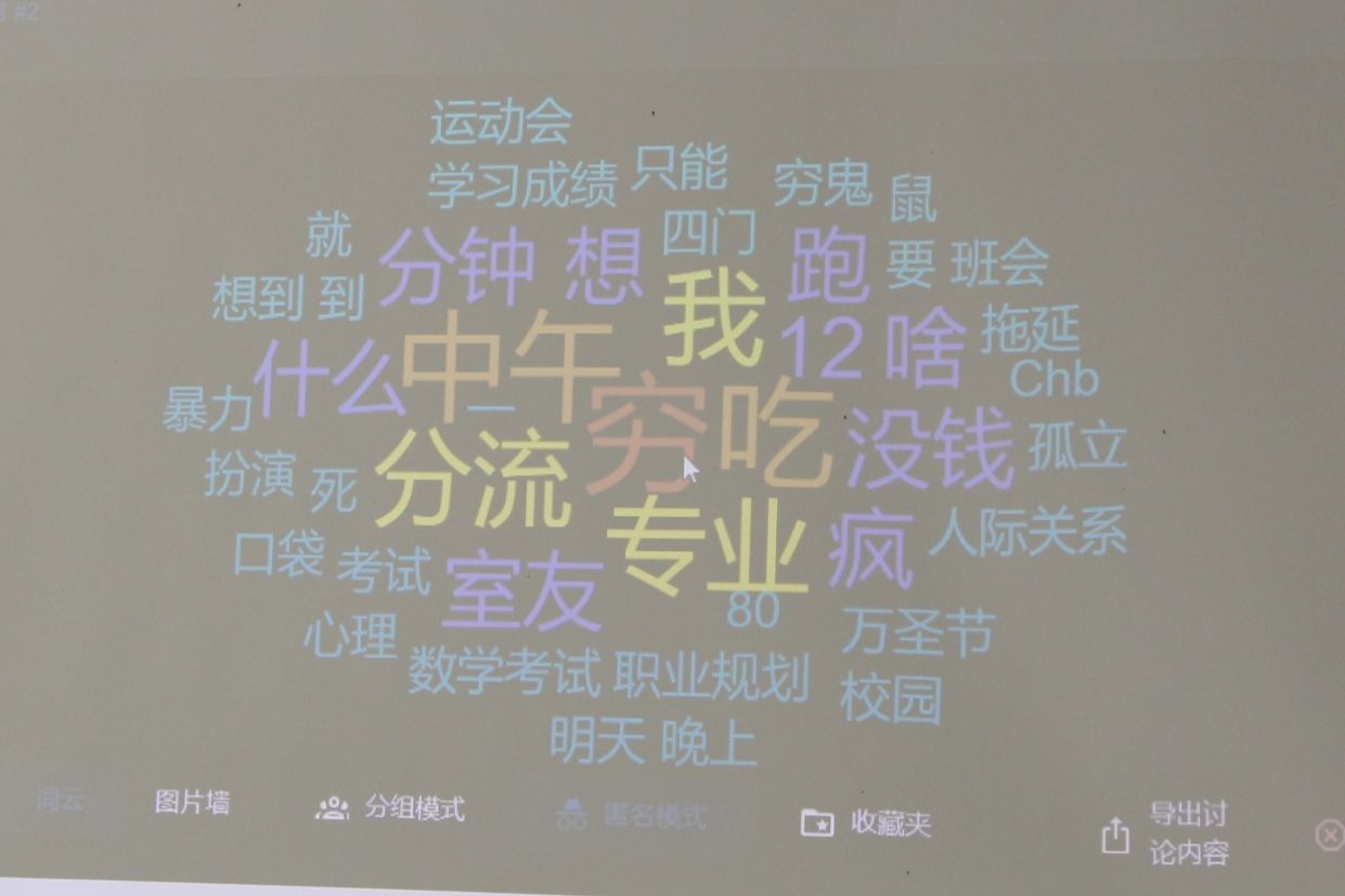 要想缓解焦虑,就得找到焦虑情绪的来源。随后,本次班会进入第二个环节——找找你的焦虑源。通过匿名弹幕留言这一创新方式,同学们在微助教平台上说出近期自己焦虑的状况并列举出了日常生活中普遍存在的一些会引发焦虑的原因。同学们之间也进行着热烈活泼的交流和分享,心理委员同时也引导同学们自我开导和缓解焦虑情绪。在一片轻松愉悦的气氛中,同学们纷纷找到了导致自己焦虑的“焦虑源”,在心理委员和身边同学的开导下顺藤摸瓜从源头上发现了导致自己焦虑的原因。