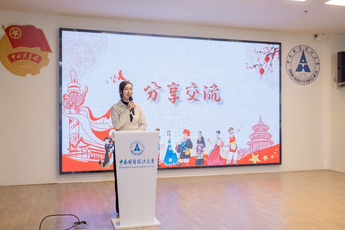 而后,少数民族专职辅导员莎吉丹姆老师进行了分享交流。她通过朴实的话语讲述了自己成长经历中遇到的人和事,在得到爱和给予爱的道路上,希望通过自己绵薄的力量,坚持组织各类石榴籽学习活动,提升边疆地区少数民族学生们的各项能力,使得学生们在未来奋斗的道路上不畏困难,团结一致,勇往直前!