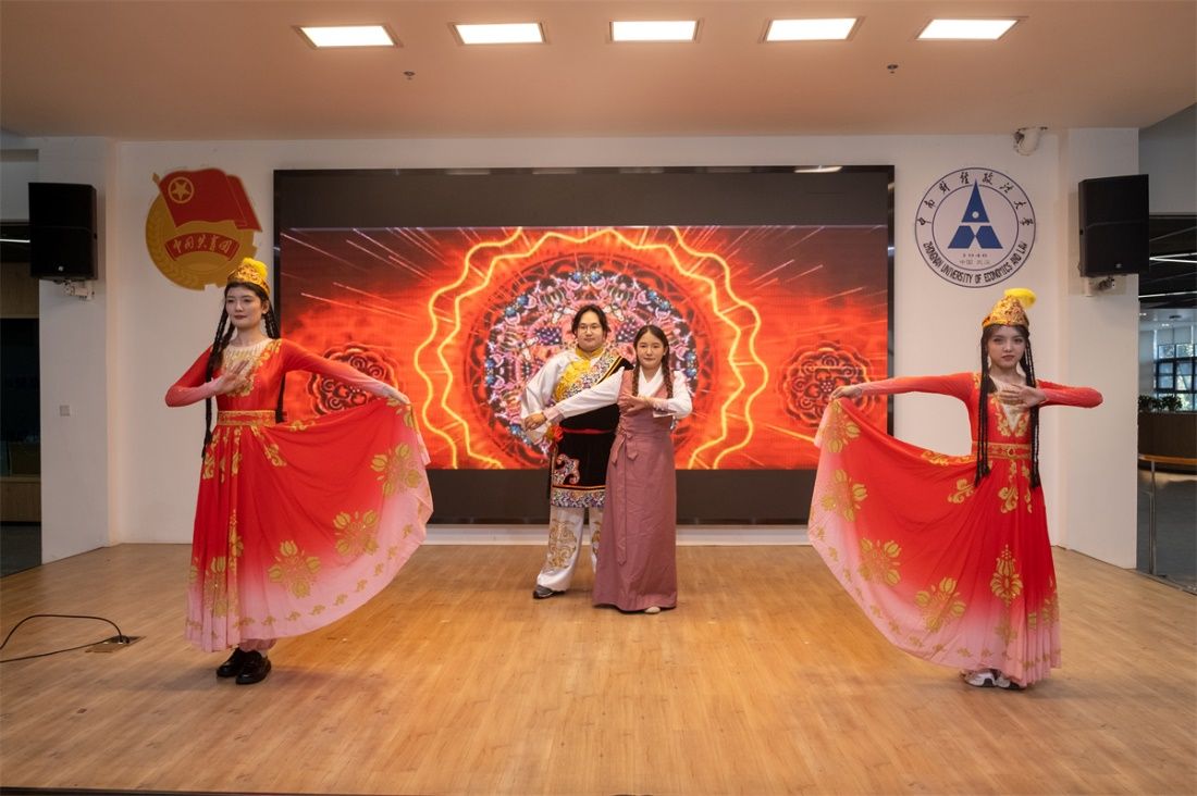 此次活动恰逢全校师生喜迎 75 周年校庆之际,金融、会计学院石榴籽学习小组全体成员,用少数民族学生特有的方式——丰富多彩的文艺表演,展示各民族文化风采底蕴与青春活力的同时,献礼学校 75 周年校庆。活动在进一步增强师生凝聚力的同时,展示民族学生风采,进一步促进了“金、会两院”的交流与合作。