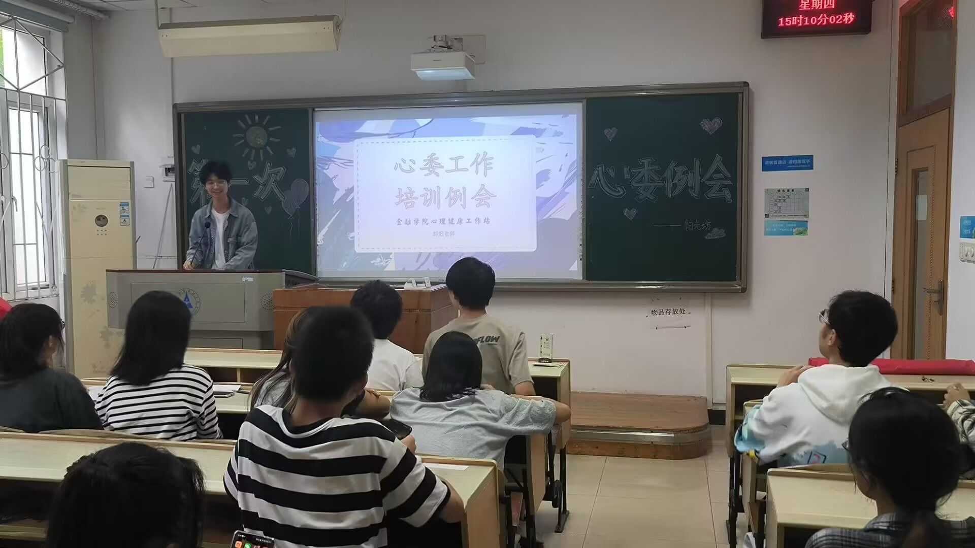 (学生记者 叶灵雨 摄影 魏茁)为帮助2023级心理委员尽快熟悉工作内容,掌握工作技能,更好呵护金融学子的心理健康,推进学院心理健康教育工作的开展,10月26日下午,金融学院2023级心委工作例会暨“守护者联盟”启动会在首义校区文泽106教室顺利召开。本次会议由金融学院心理健康教育工作站——阳光坊承办,金融学院心理健康教育工作站站长胡阳老师出席会议,阳光坊全体负责人及23级心理委员参加,会议由阳光坊负责人陆瑞东主持。