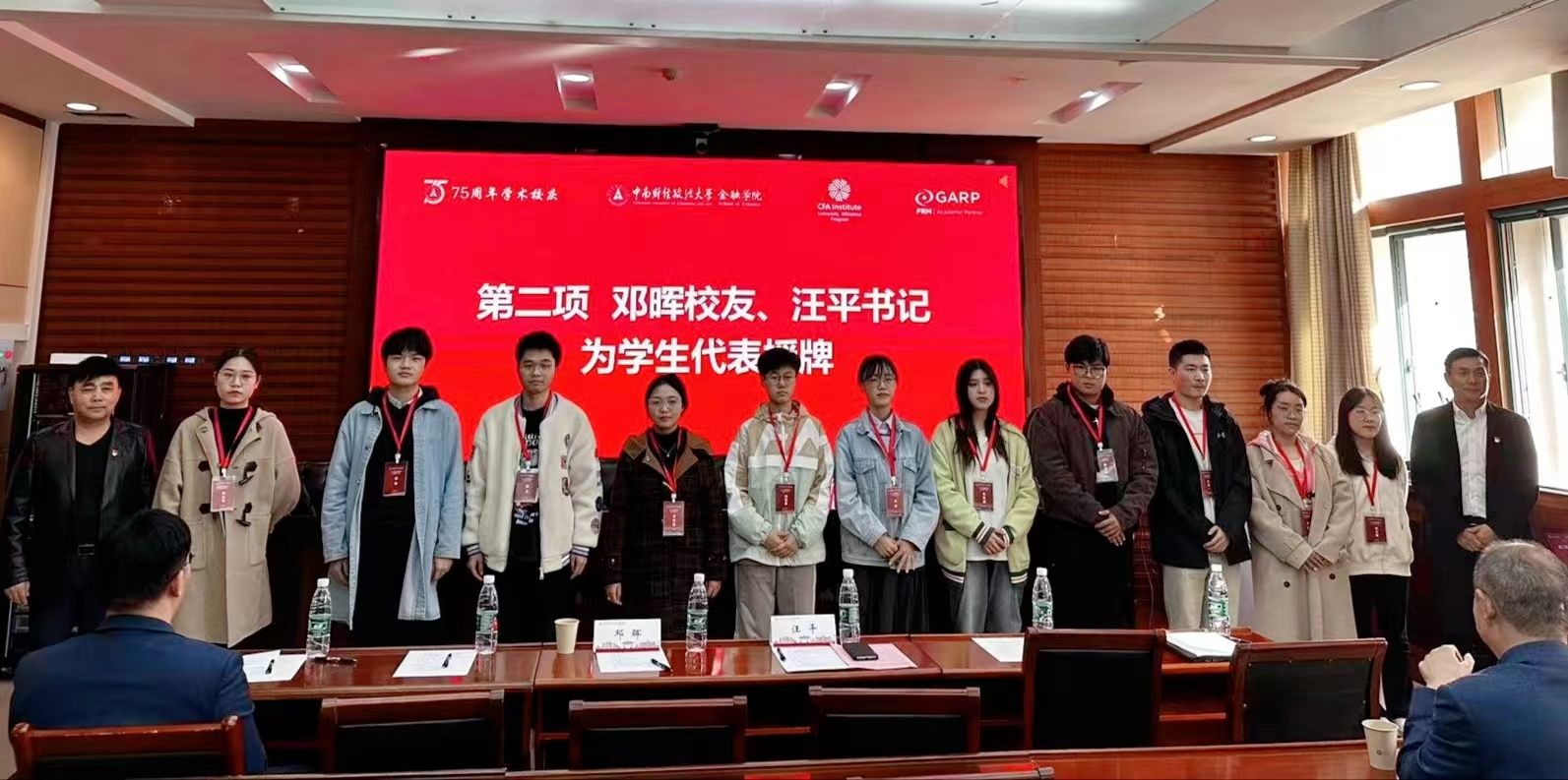 邓晖校友、汪平书记共同为2023级金融硕士“证券投资方向”“财富管理方向”学生代表授牌。金融硕士(证券投资方向)以前沿金融投资理论为指导,系统开展证券投资理论、政策和实务教研,金融硕士(财富管理方向)旨在培养具有良好金融理论基础,富有创新、进取精神和较强的高层次、应用型、复合型金融人才。这两个方向均面向在校的一年级金融专业硕士研究生开设,2023年入选人数分别为10人和15人。