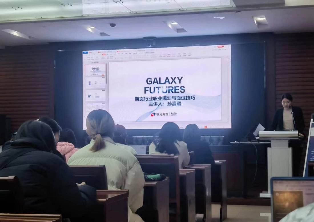 第二位向大家分享的是孙嘉璐老师,主题围绕着期货行业职业规划与面试技巧展开。首先是职业规划,孙老师以银河期货为例,向大家介绍了期货及其子公司的主营业务。其次,孙老师主要从业务和研究两个岗位为我们大致介绍了一下期货公司的工作内容。随后是面试技巧,孙老师提醒大家从仪表,仪态,礼节,收集信息,熟读简历,对镜练习等多个方面做好面试准备。在最后,孙老师提示大家面试技巧都是机动的,同学们应该结合具体问题具体分析,学会变通。