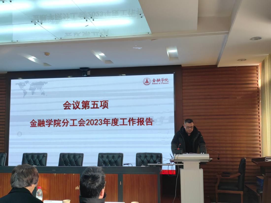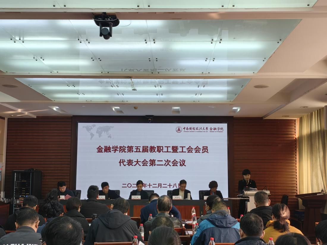 (通讯员 李 奥)2023年12月28日下午,金融学院第五届教职工代表暨工会会员代表大会第二次会议在文泉南313会议室举行。校工会副主席、妇委会副主任吴艳、校工会尤军及金融学院第五届教职工代表、全体工会会员参加大会。会议由金融学院分工会主席朱诚蕾主持。