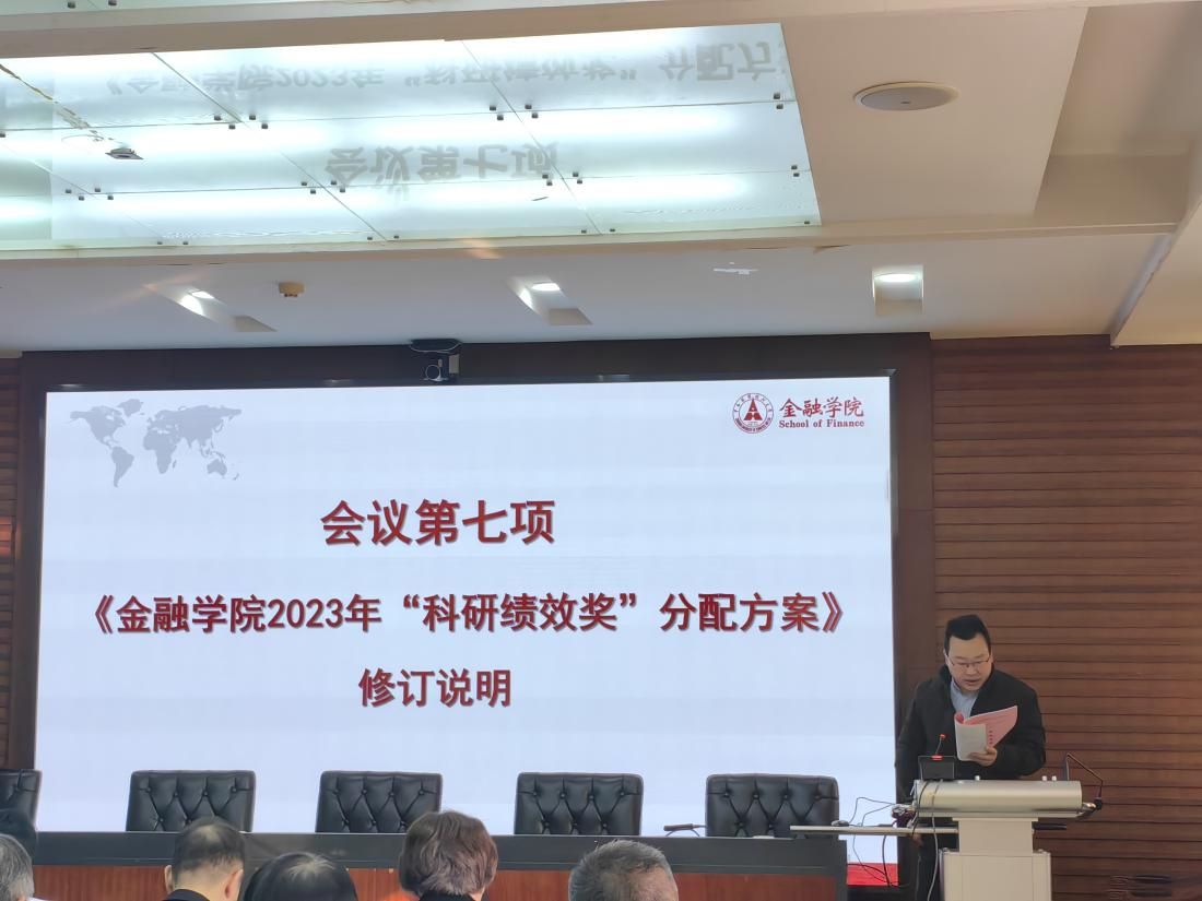 院工会副主席唐彬老师作2023年工会工作报告。唐老师回顾了2023年的教代会、工会工作,阐述了新一届教代会、工会工作的思路与举措。大会书面审阅了《金融学院2023年度财务工作报告》、《金融学院2023年“科研绩效奖”分配方案》的修订说明。大会审议并通过了金融学院2023年度工作报告、金融学院工会2023年度工作报告、金融学院2023年度财务工作报告、《金融学院2023年“科研绩效奖”分配方案》的修订说明。