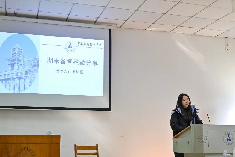 金融学院分团委在2023级组织一次期末经验分享会,旨在“扬考风,正考纪”,邀请高年级学生给低年级学生讲授学习方法、传授学习经验,加强榜样领学。经验分享会邀金融2102班张映雪、金计2201班程安之、造价2201班王怡麟根据各科目所占的学分分科目介绍了复习方法。并从合理分配学习时间、分散任务、拒绝拖延、每日计划四个方面强调了复习规划的要点。