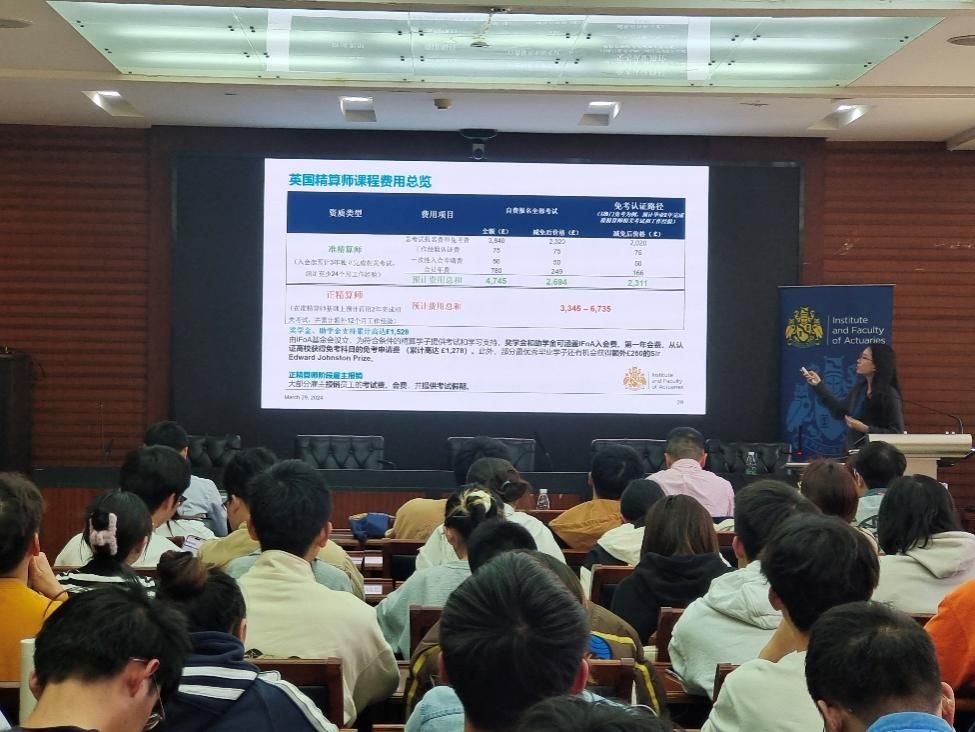 最后英国精算师协会大中华区市场支持专家张婧对英国精算师协会、资质认证框架以及米兰电竞·(中国区)免考情况进行了讲述,详细地向各位同学展示了成为准精算师与正精算师需要通过的考试科目。同时她对英国精算师考试费用总览、精算师职业发展前景、政府相关扶持等内容进行了分享,鼓励同学们积极投身于精算事业。