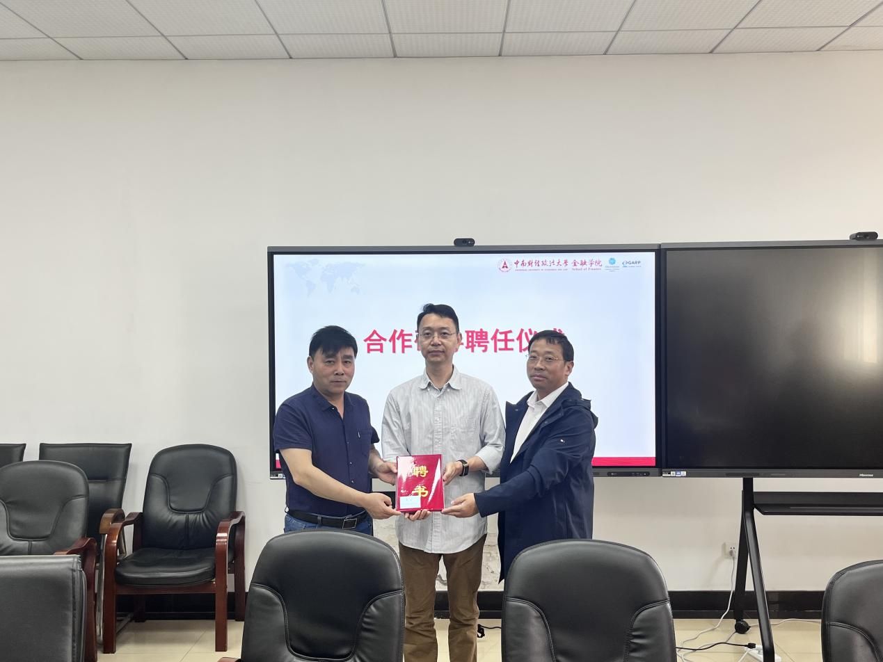 (学生记者 刘月)2024年4月1日上午,金融学院在文泉楼南408会议室召开合作硕导聘任仪式暨校企合作洽谈会。粤开证券股份有限公司副总裁黄浩先生、武汉晟维私募基金管理有限公司副总经理龚会明先生,学院党委书记汪平、党委副书记向敏、副院长胡宏兵、博士生导师徐晟以及学院研究生辅导员参加。洽谈会由胡宏兵副院长主持。