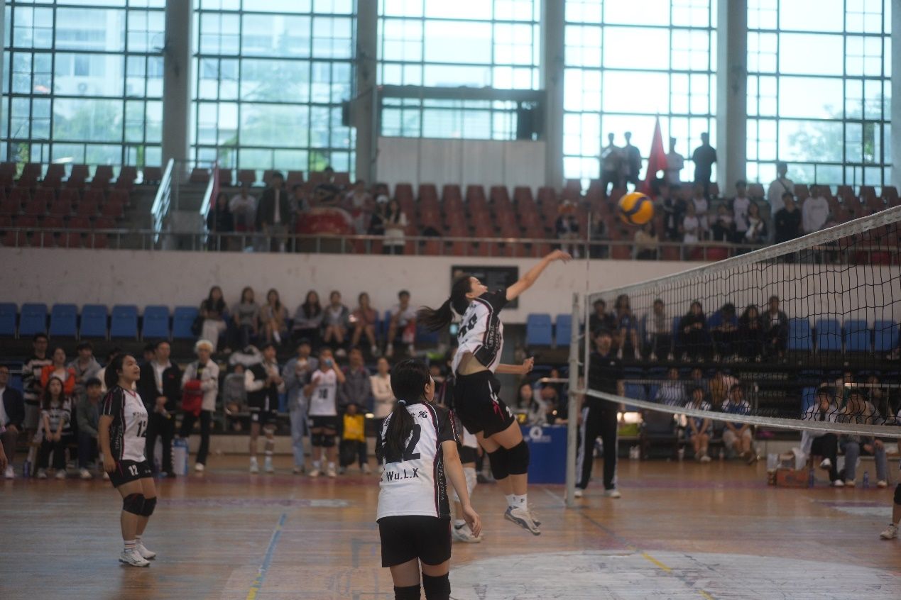 第三局,金融女排势如破竹,开局便以8:2的巨大优势领先。随后,法学女排多次发球冲击我方,比分被追平。但是,金融女排通过暂停及时调整状态和场上战术,张潇予与吴灵霞密切合作,利用对方防守中心的薄弱点将球扣入,屡屡得分。在多个长来回中,吴灵霞凭借精湛的捞网技术将球救起,艾陈忱步法灵活,连续将球从场外救回,陈珮慈垫球处理技巧机敏,让对方难以组织有效进攻。随着比分来到焦灼的24平,法学女排攻势加大,李思远顶住压力防守到位,黄奕乔多次吊球得分。最终由罗珮菁吊球得分取得第三局比赛的胜利,比分28:26,夺得冠军。