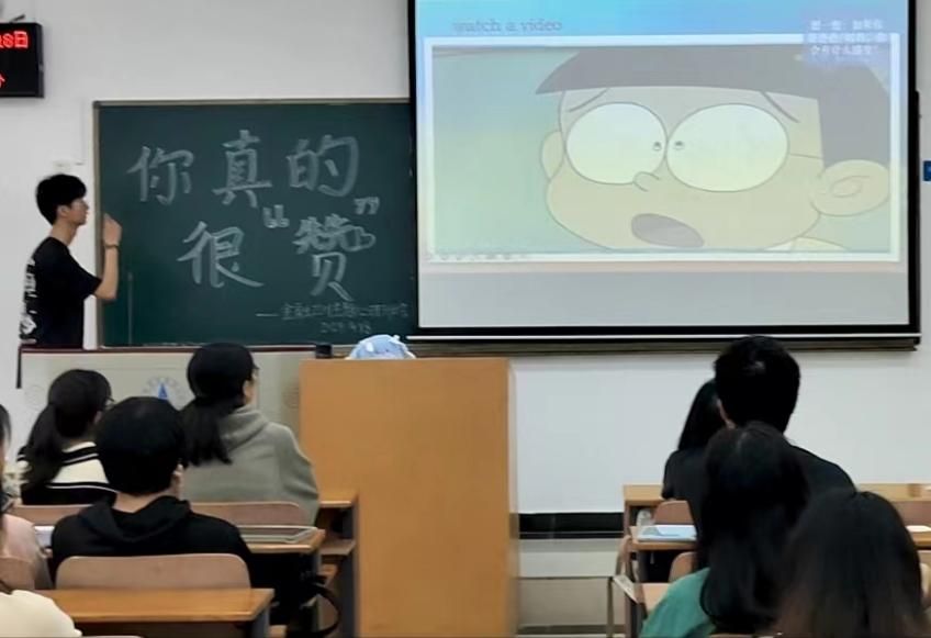第二部分采用情景演绎的方式,心理委员设计了情景复现和即兴表演两个小环节,让同学们处于一个特定的场景之下,带领大家思考赞美的意义。在一片轻松愉悦的氛围中,同学们充分体验到了赞美的激励作用,表示在未来的生活和学习中会更加自然和频繁地使用赞美,来提升人际关系和谐与积极性。