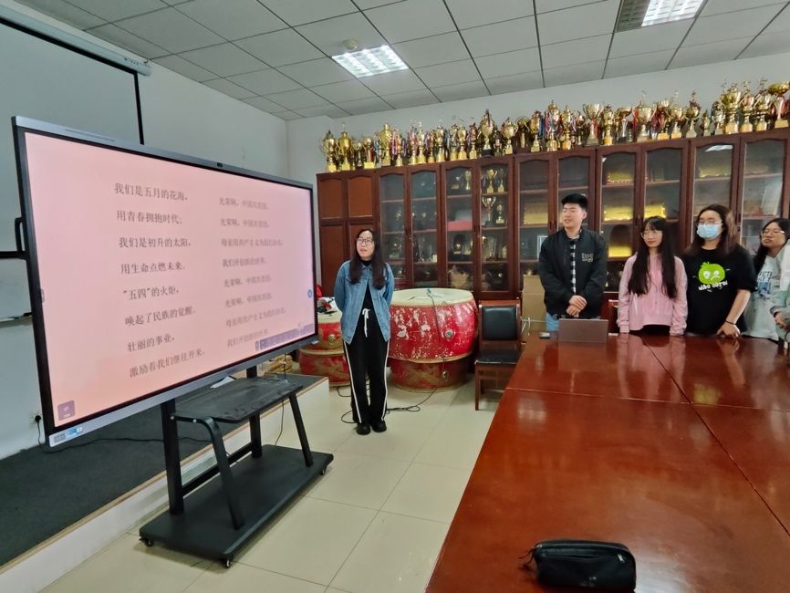 “我们是五月的花海,用青春拥抱时代……”活动开始,支部成员在优美动人的旋律中大声齐唱中国共青团团歌,展现了青年一代的朝气蓬勃和积极向上的精神风貌。