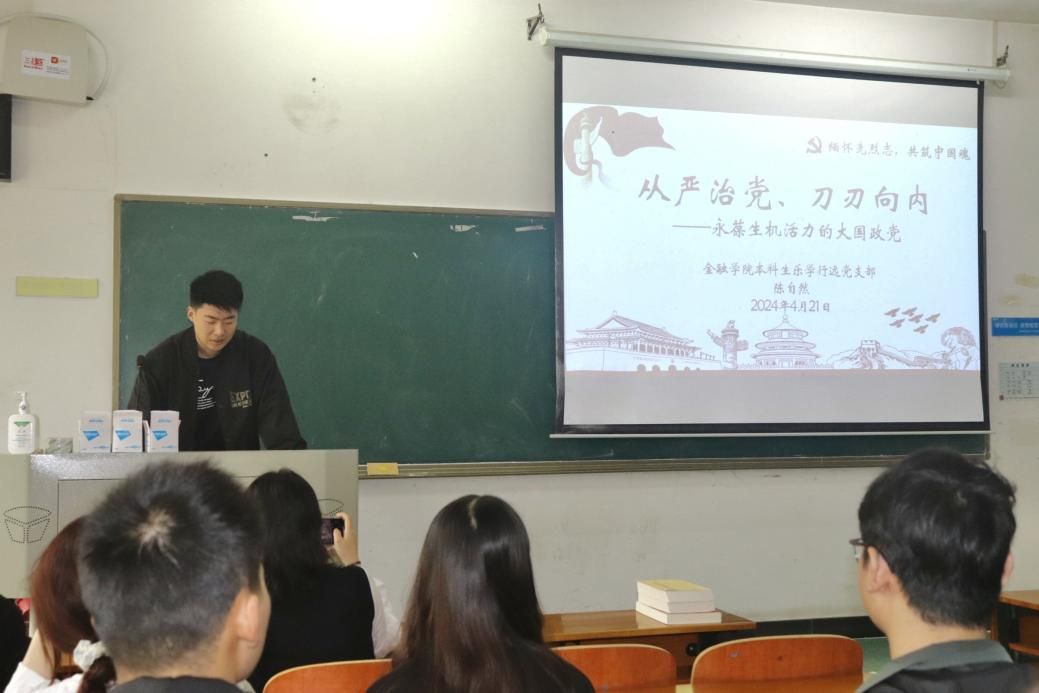 为加强党纪学习教育,陈自然以“从严治党,刀刃向内”为主题,为全体同志带来了一场关于中国共产党纪律建设历史的党课。陈自然从中共五大及中央监督机构的设置讲起,详细阐述了党的纪律建设的重要性。他引经据典,结合丰富的历史资料和现实案例,深入浅出地讲解了党的纪律建设的理论和实践。同时,他还结合金融学院的学科特色,分析了金融领域纪律斗争的严峻性和复杂性,强调了全面从严治党在金融领域的积极意义。