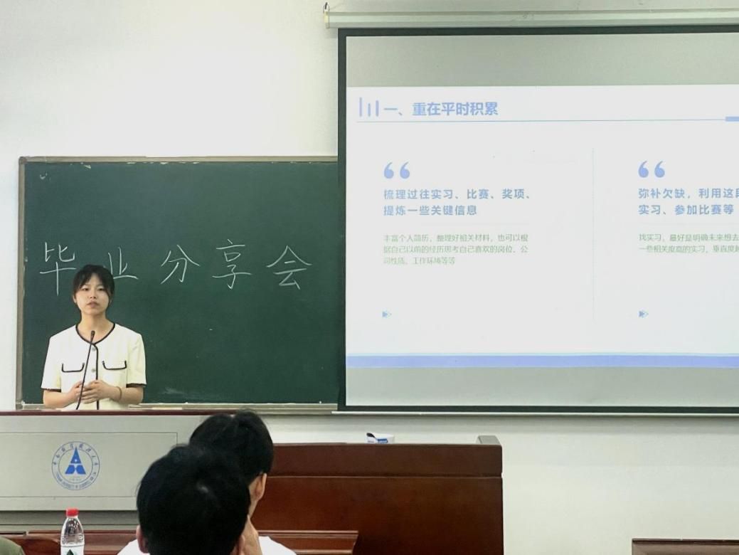 在就业经验分享环节中,入职华为的柳逸凡结合自身的求职经历,强调了准备工作的重要性,并给同学们详细讲解了如何增加就业成功的砝码。他还特别提到在与各高校本科生甚至研究生同台竞争时,必须保持自信大方,敢于表达自我。入职京东的赵晨着重分享了精力分配和简历制作两大方面,建议同学们在专注考研的过程中也要考虑求职问题,避免错过宝贵机会,从而为步入人生新阶段做好充分准备,并建议同学们可以多参与相关实习,提升自己的综合素质。分别考取浙江省定向选调和广西壮族自治区定向选调的叶梓凌和黄桉,则以备战考公为主题,主要分析了考前准备和考试技巧两个部分,提醒同学们要打破信息差,获取有效资源,制定切实可行的职业规划
