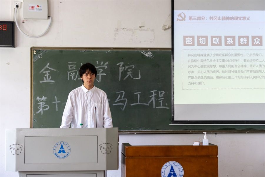 井冈山精神初心如磐,时代征程砥砺前行。中南大“融梦”宣讲团的王鹏博以“不忘初心,继续前进”为题进行井冈山精神宣讲,他不仅向大家讲述了井冈山革命根据地的建立,还深入阐释了井冈山精神的科学内涵。在细致分析井冈山精神的现实意义后,他鼓励大家继承和发扬井冈山精神,在时代征程中砥砺前行,让井冈山精神放射出新的时代光芒。