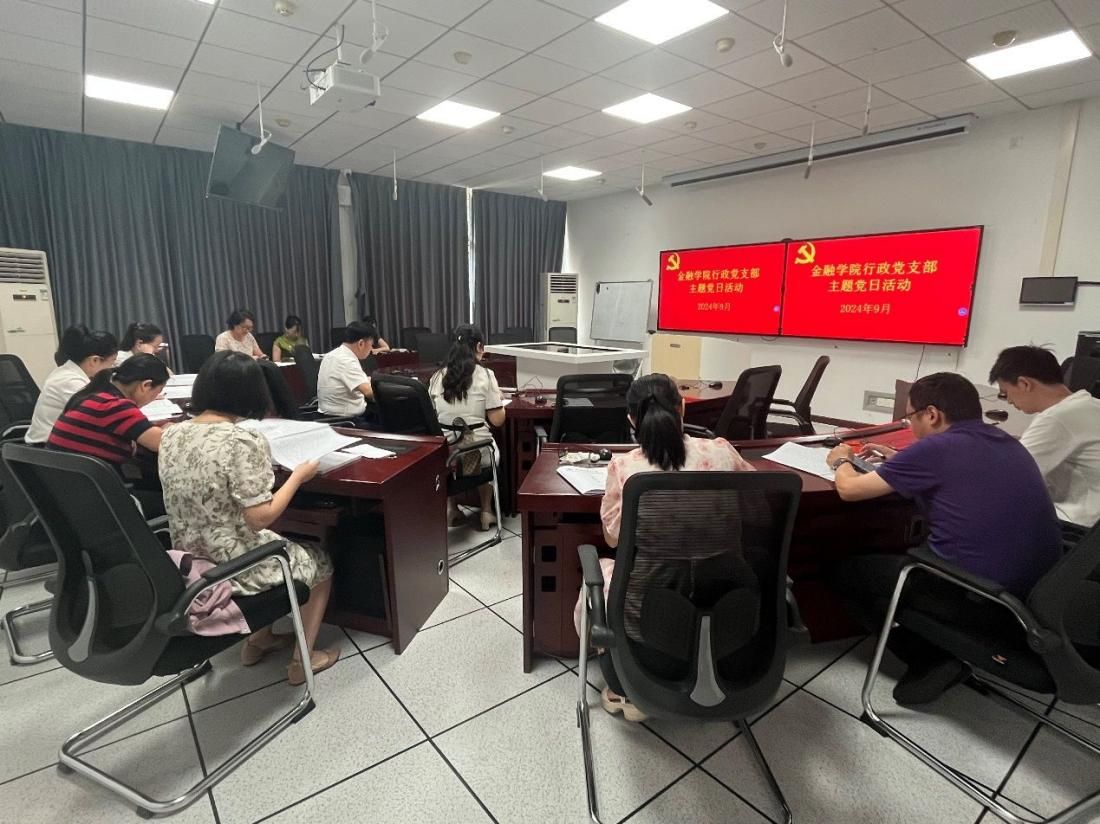 (通讯员 杨雅婷)根据校党委的统一部署和安排,2024年9月5日上午,金融学院行政党支部在文泉楼南106召开了9月主题党日活动。本次主题党日活动主题为“学习贯彻党的二十届三中全会精神,为进一步全面深化改革凝心聚力”,会议由行政党支部书记杨祯主持。