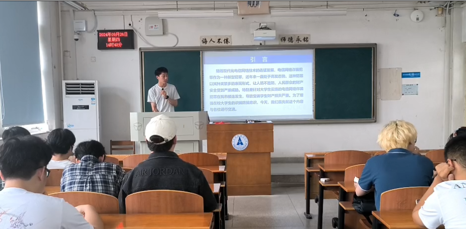 活动第三项,预防电信诈骗,提高防诈意识。电信网络诈骗作为一种新型犯罪,种类复杂形式繁多,许多时候令人防不胜防。主持人邹博文以此为展开面向大家深入浅出地介绍了电信诈骗的内容特点,通过典型案例揭露了电信诈骗的主要手段,并在最后给出相关有效的防范措施。在此过程中团支部各成员感悟良多,自身警惕意识得到了相应的提高,相信在未来的校园生活中也将加强防范意识,保护自身。