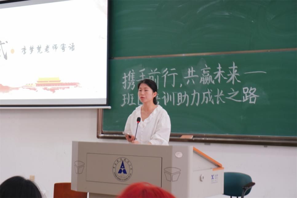 24级辅导员李梦梵老师对新生班团干部寄语。李梦梵老师回望过去,展望未来,用亲切自然的话语鼓励引导新生班委,提出“共同发展”、“共同进步”等美好展望。