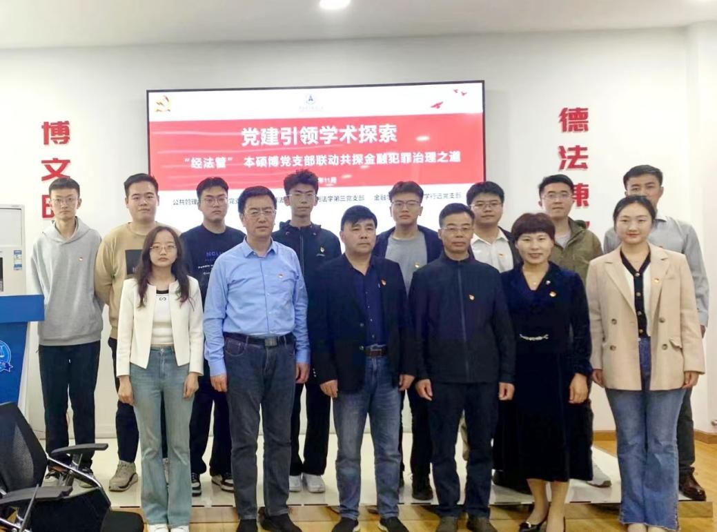 (通讯员 江永鑫)为深化学术研究与党建工作的深度融合,提高人才培养质量,助力学校培养“懂经济、通法律、善管理”的融通型人才,11月14日下午在文治楼,金融学院、刑事司法学院、公共管理学院联合举办“党建引领学术探索——‘经法管’本硕博党支部联动共探金融犯罪治理之道”主题党日活动。金融学院党委书记汪平、刑事司法学院党委书记张志刚、公共管理学院党委书记王建荣、金融学院党委副书记朱诚蕾和公共管理学院博士生党支部、刑事司法学院硕士生刑法学第三党支部、金融学院本科生乐学行远党支部等50名党员同志参加本次活动。