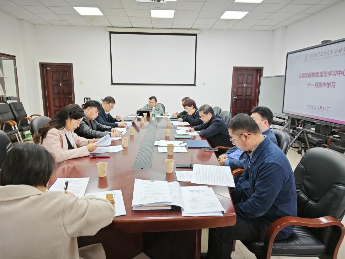 根据学校部署安排,结合学院工作实际,2024年11月19日下午在文泉楼南408会议室召开了金融学院党委理论学习中心组十一月份集中学习会。金融学院党委理论学习中心组成员参加学习,学院党委书记汪平主持。