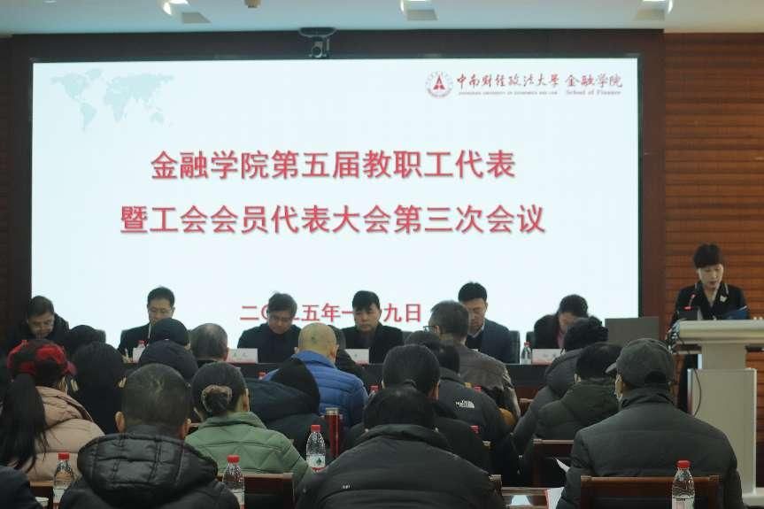 (通讯员 李 奥)2025年1月9日,金融学院第五届教职工代表暨工会会员代表大会第三次会议在文泉南313会议室举行。校工会副主席吴凡,校工会柯锐及金融学院第五届教职工代表、全体工会会员参加大会。会议由金融学院分工会主席朱诚蕾主持。