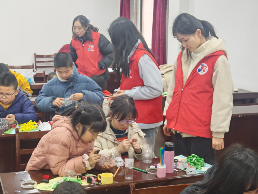 随后,志愿者带领小朋友们一起制作手工树和雨水收集器。在制作手工树时,小朋友们充分发挥想象力,用五颜六色的彩纸和画笔,创作出形态各异的大树,为“森林” 增添了无限生机。在制作雨水收集器时,小朋友们又巧妙地将矿泉水瓶进行改造,变废为宝。剪刀咔嚓咔嚓的声音,仿佛是他们与环保对话的节奏,每一个作品都凝聚着小朋友们的智慧和对环保的独特理解。